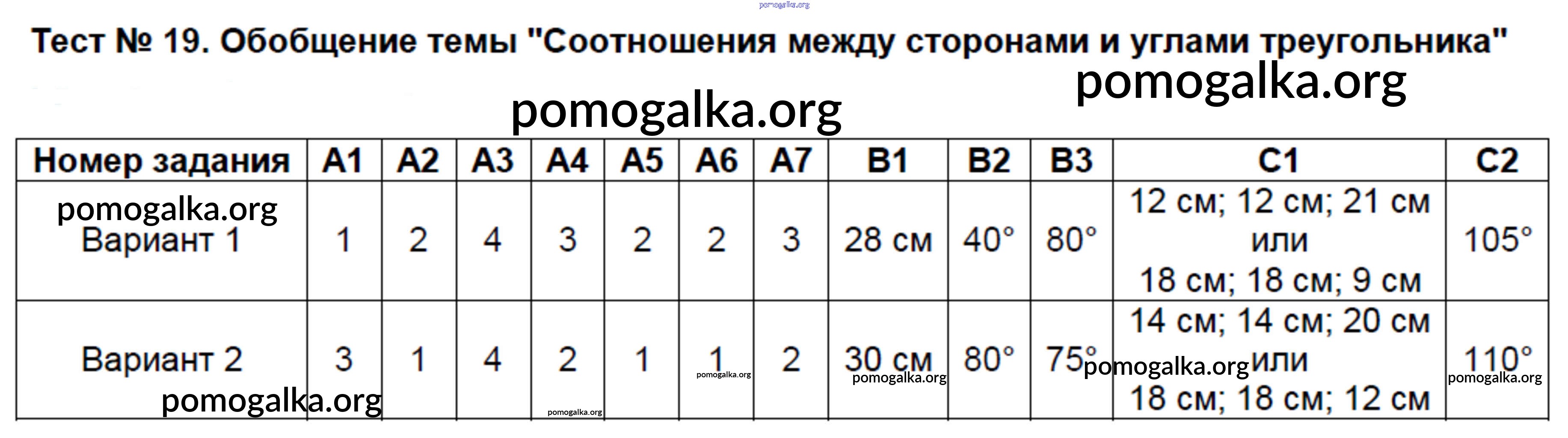 Готовые ответы - Геометрия 7 класс КИМ Гаврилова Н.Ф. - тест 19