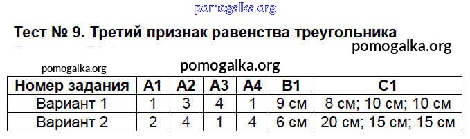 Готовые ответы - Геометрия 7 класс КИМ Гаврилова Н.Ф. - тест 9