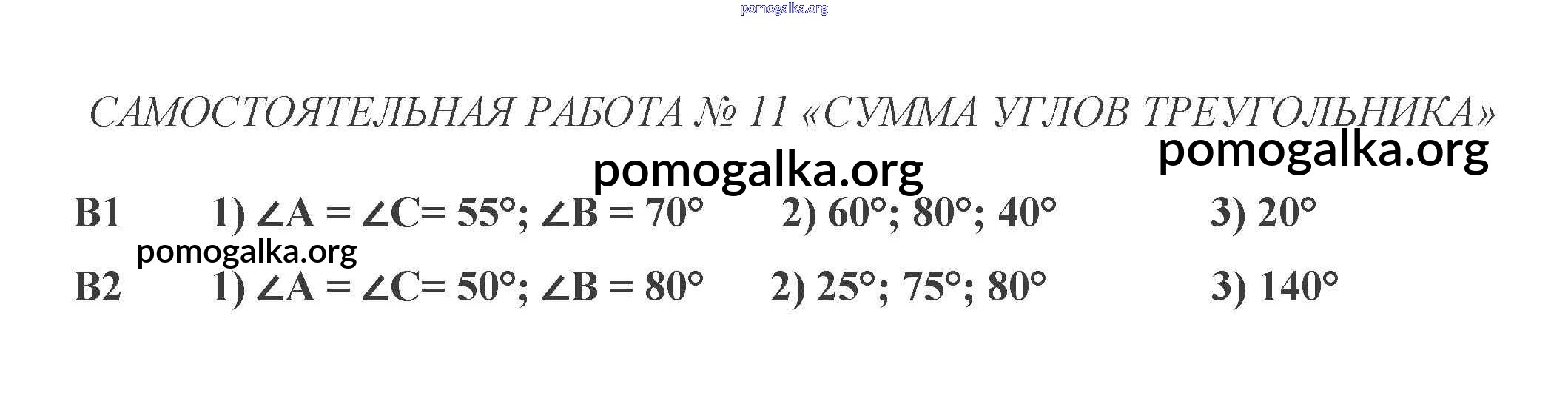 Готовые ответы - Геометрия 7 класс КИМ Гаврилова Н.Ф. - самостоятельная работа 11