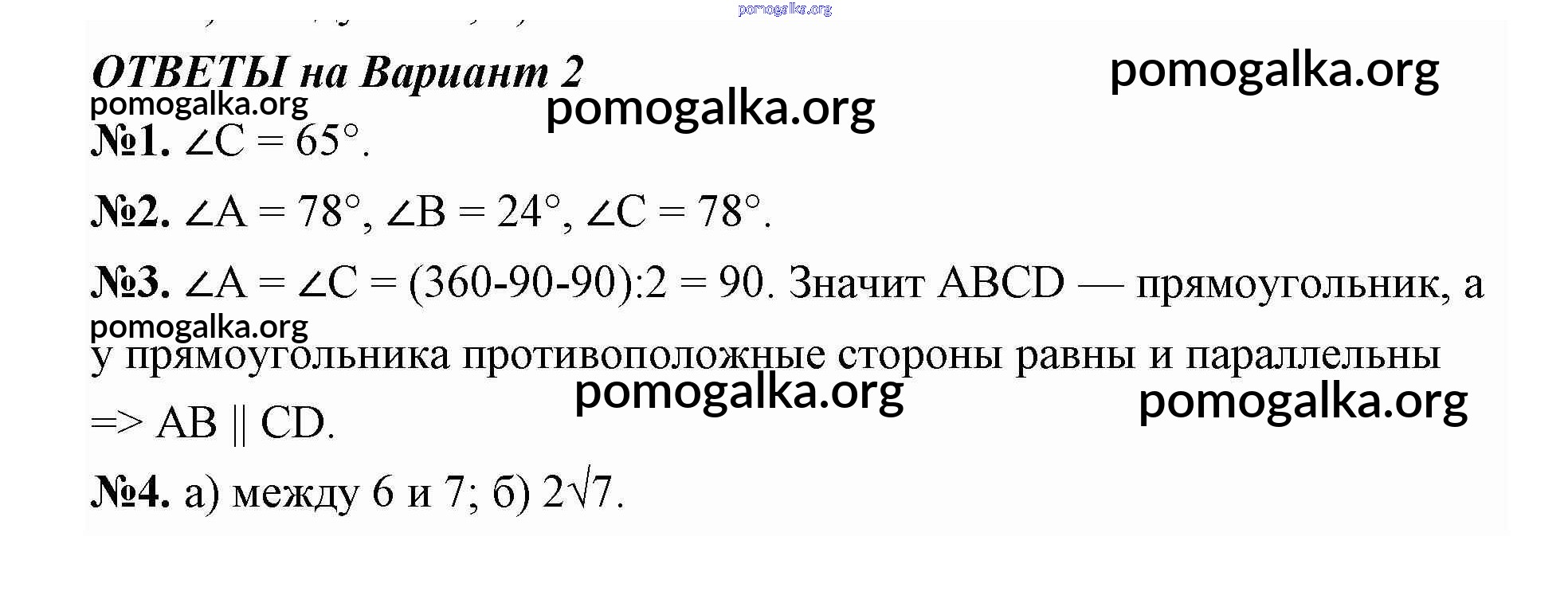 Готовые ответы - Геометрия 7 класс поурочные разработки Гаврилова - итоговые контрольные работы (вариант) 2