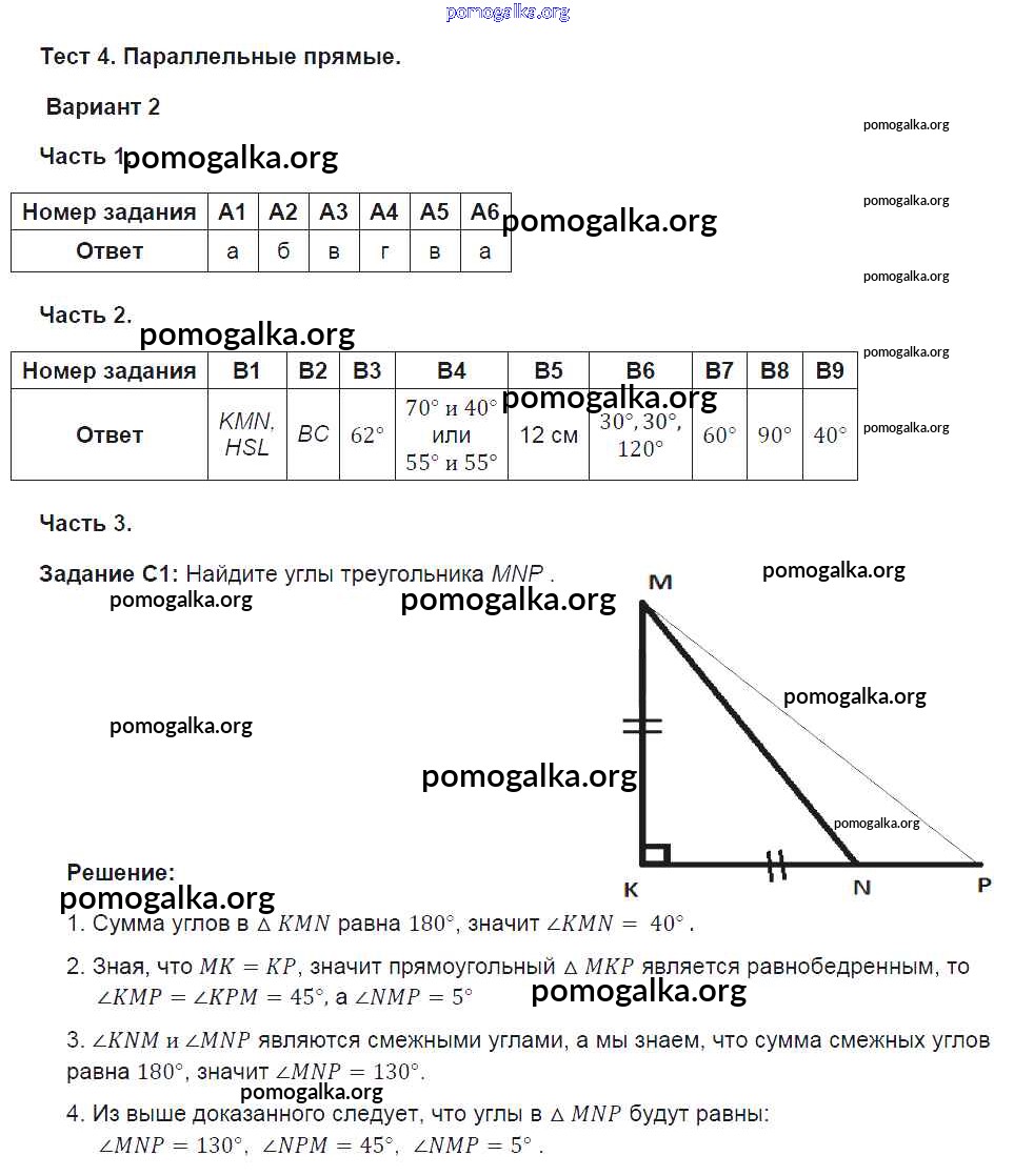 Готовые ответы - Геометрия 7 класс Тесты Фарков А.В. (к новому уч. Атанасяна Л.С.) - глава 4. вариант 2