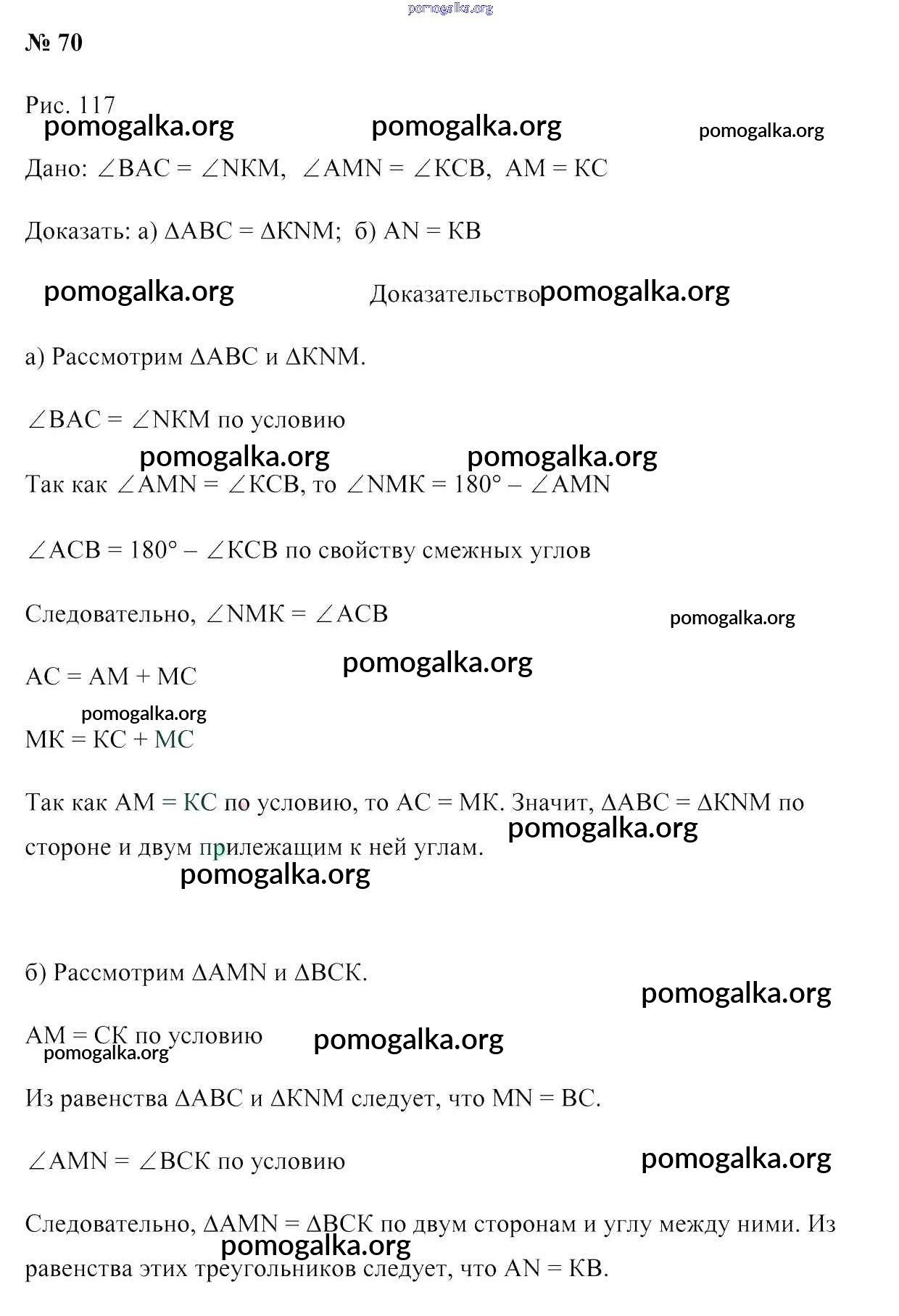 Готовые ответы - Геометрия 7 класс Казаков В.В. - задача 70