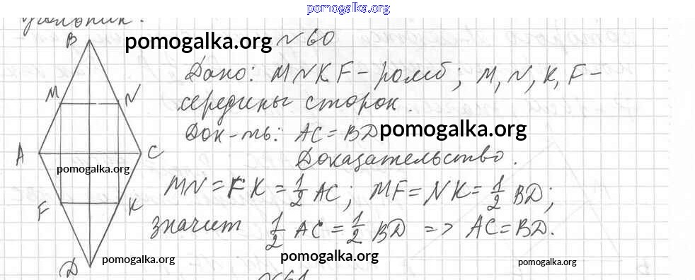 Готовые ответы - Геометрия 8 класс дидактические материалы Мерзляк А.Г. - вариант 1 упражнения 60