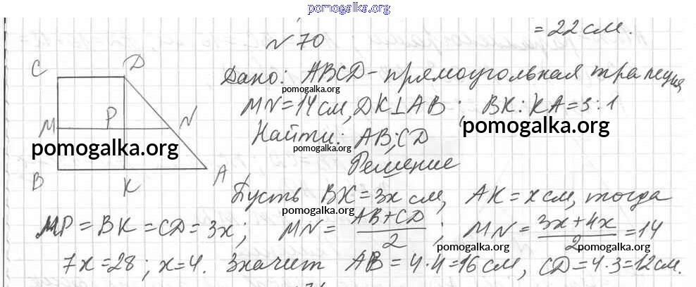 Готовые ответы - Геометрия 8 класс дидактические материалы Мерзляк А.Г. - вариант 1 упражнения 70