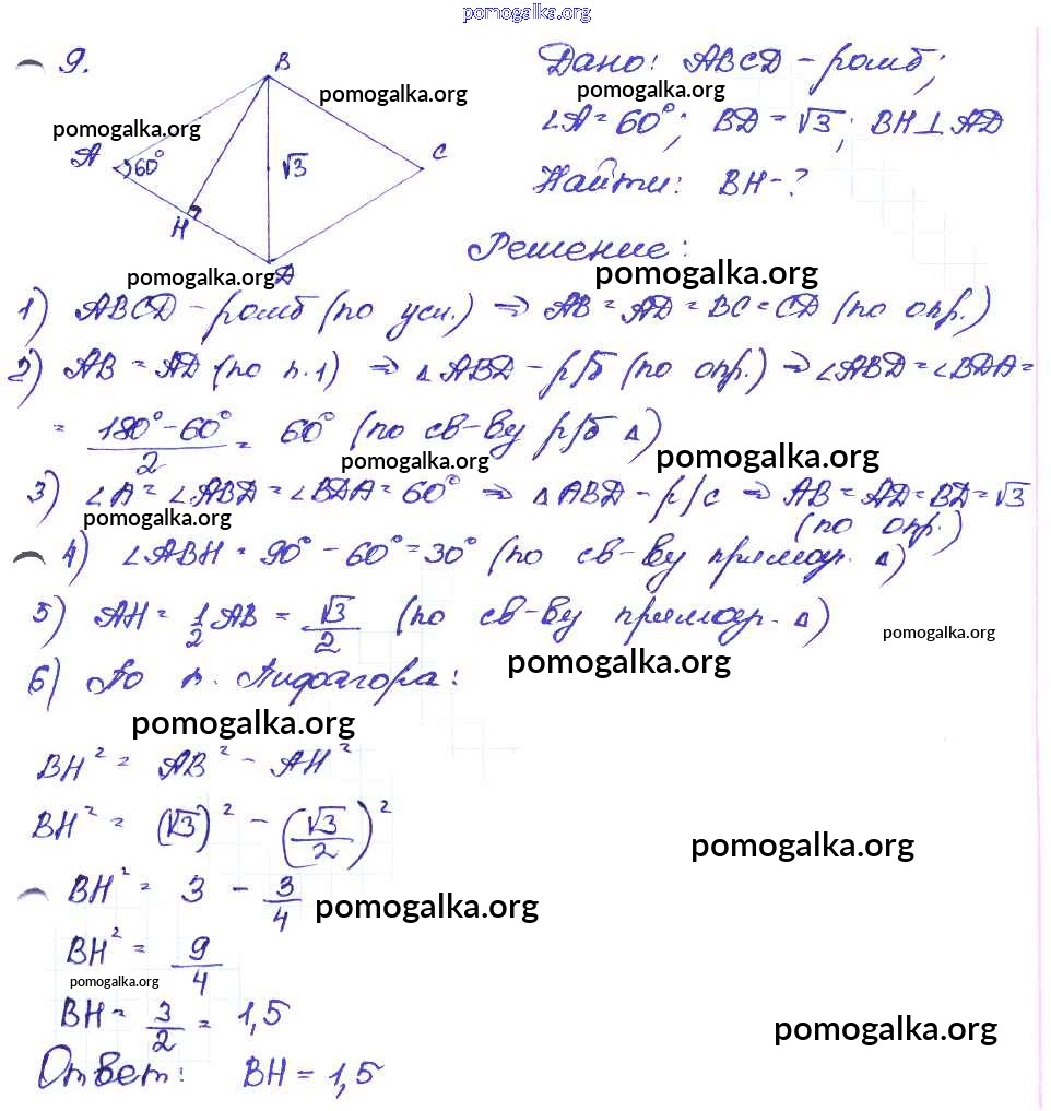 Готовые ответы - Геометрия 8 класс Дидактические материалы Зив Б.Г. - вариант №1 мд №2 9