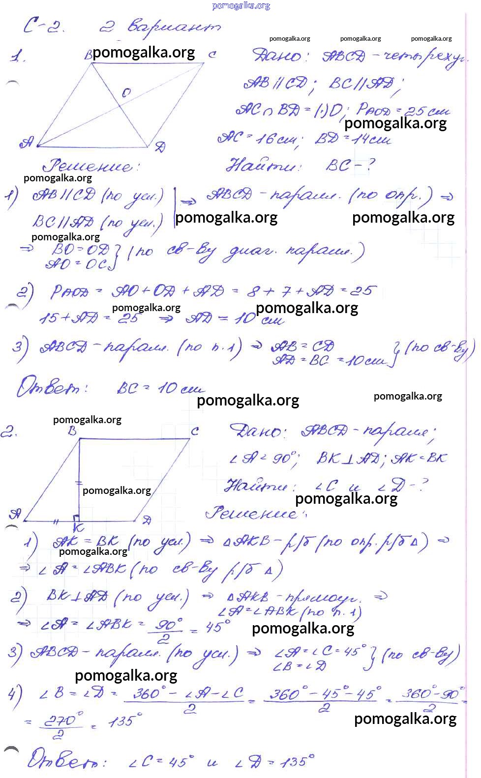 Готовые ответы - Геометрия 8 класс Дидактические материалы Зив Б.Г. - ср №2 самостоятельная работа вариант-2