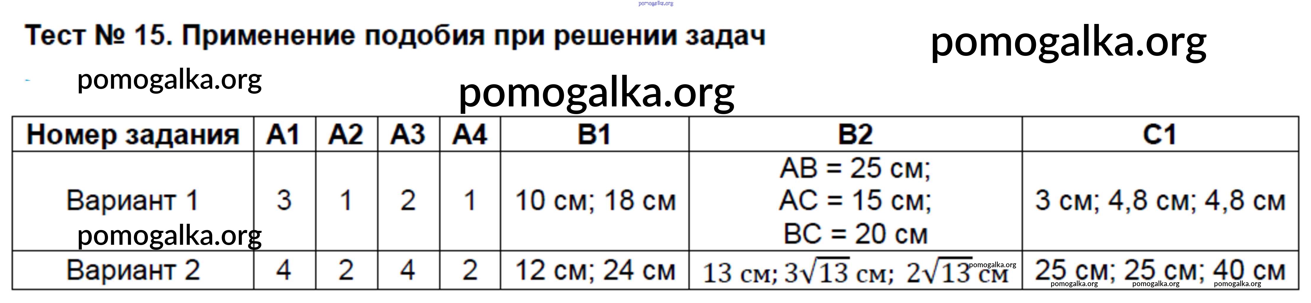 Готовые ответы - Геометрия 8 класс контрольно-измерительные материалы Гаврилова Н.Ф. - тест 15