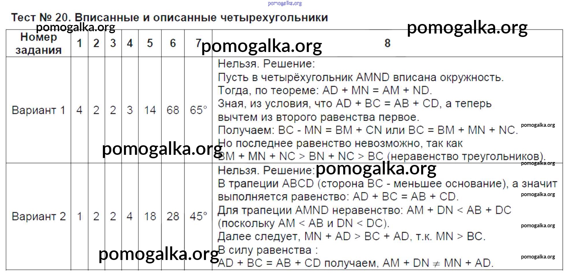 Готовые ответы - Геометрия 8 класс контрольно-измерительные материалы Рязановский А.Р. - тест 20