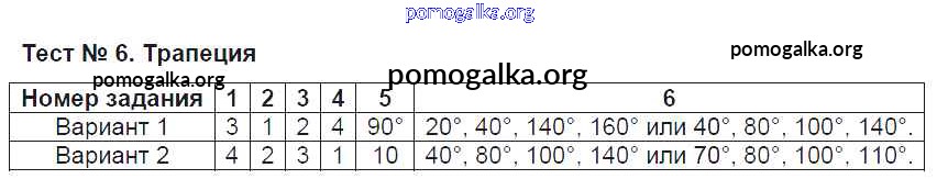 Готовые ответы - Геометрия 8 класс контрольно-измерительные материалы Рязановский А.Р. - тест 6