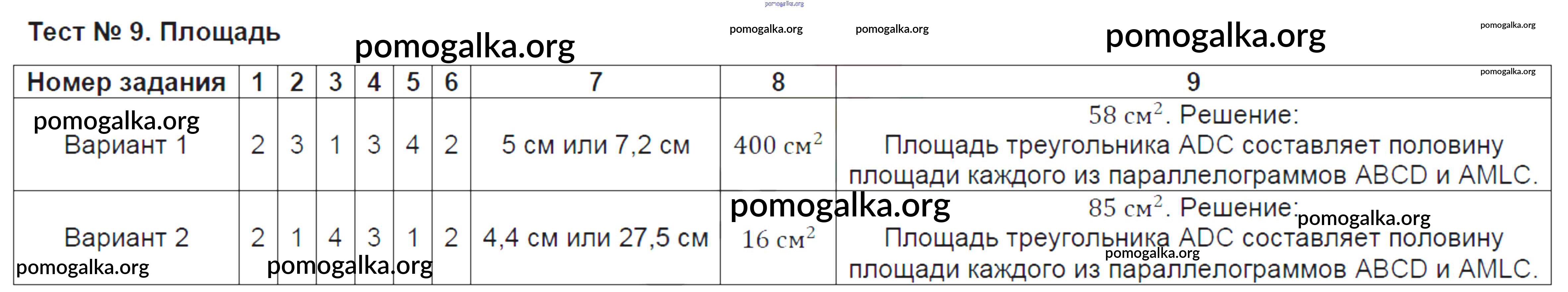Готовые ответы - Геометрия 8 класс контрольно-измерительные материалы Рязановский А.Р. - тест 9