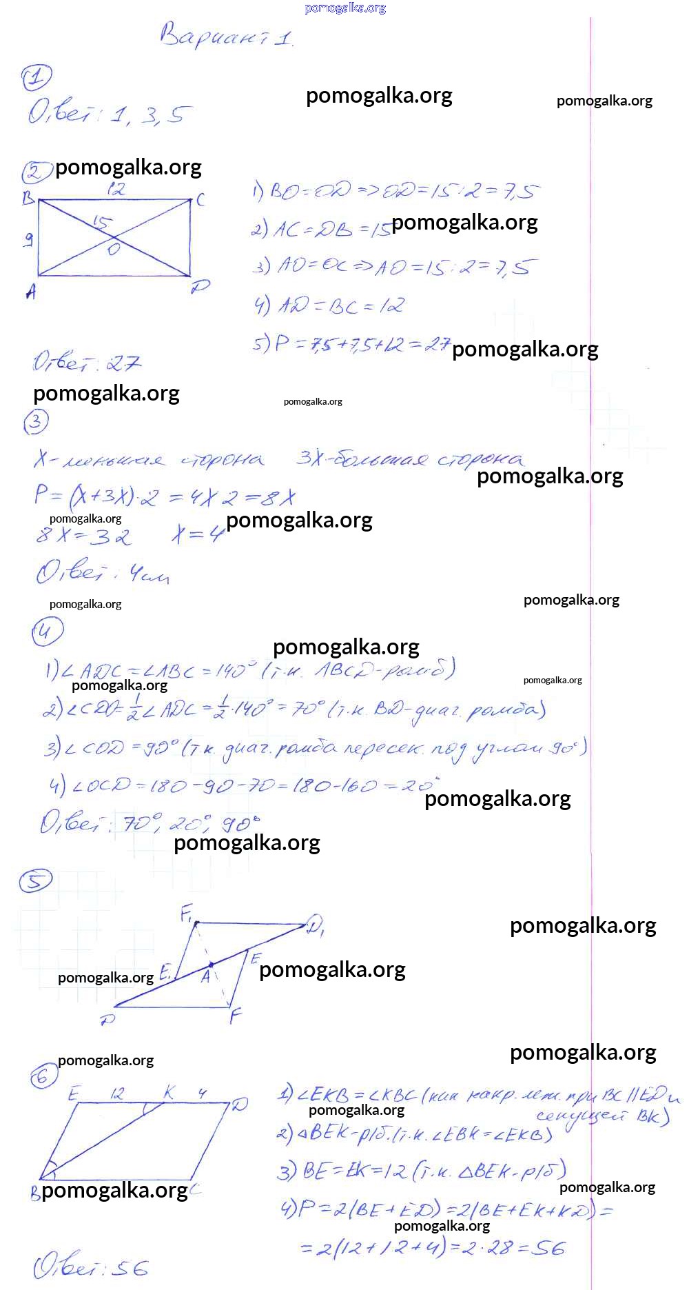 Готовые ответы - Геометрия 8 класс контрольные работы Мельникова Н.Б. (к уч. Атанасяна) - кр-1 Вариант №1