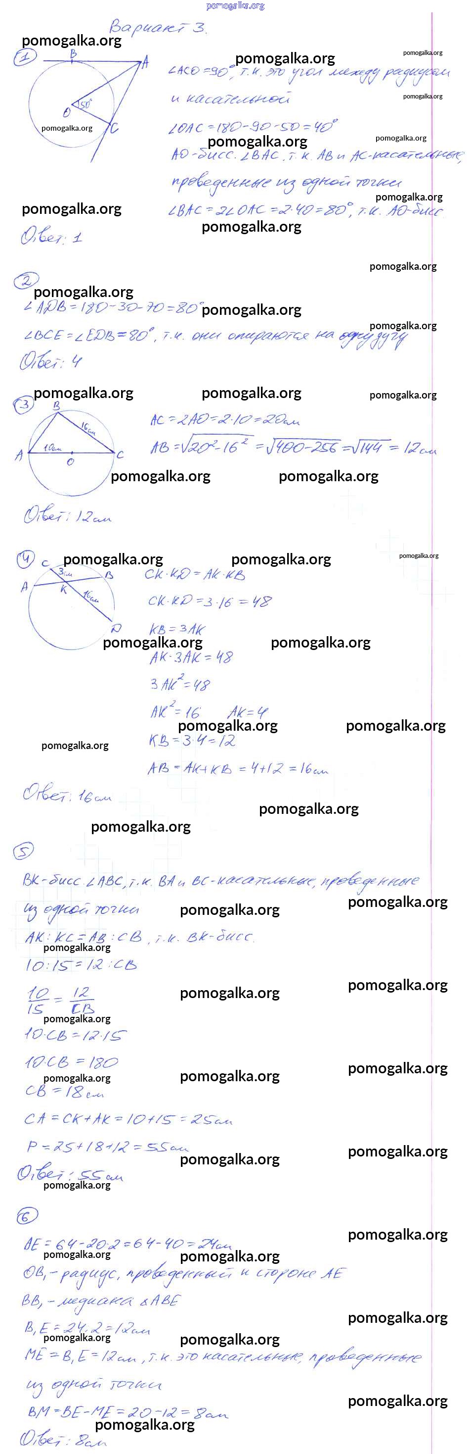 Готовые ответы - Геометрия 8 класс контрольные работы Мельникова Н.Б. (к уч. Атанасяна) - кр-4 Вариант №3