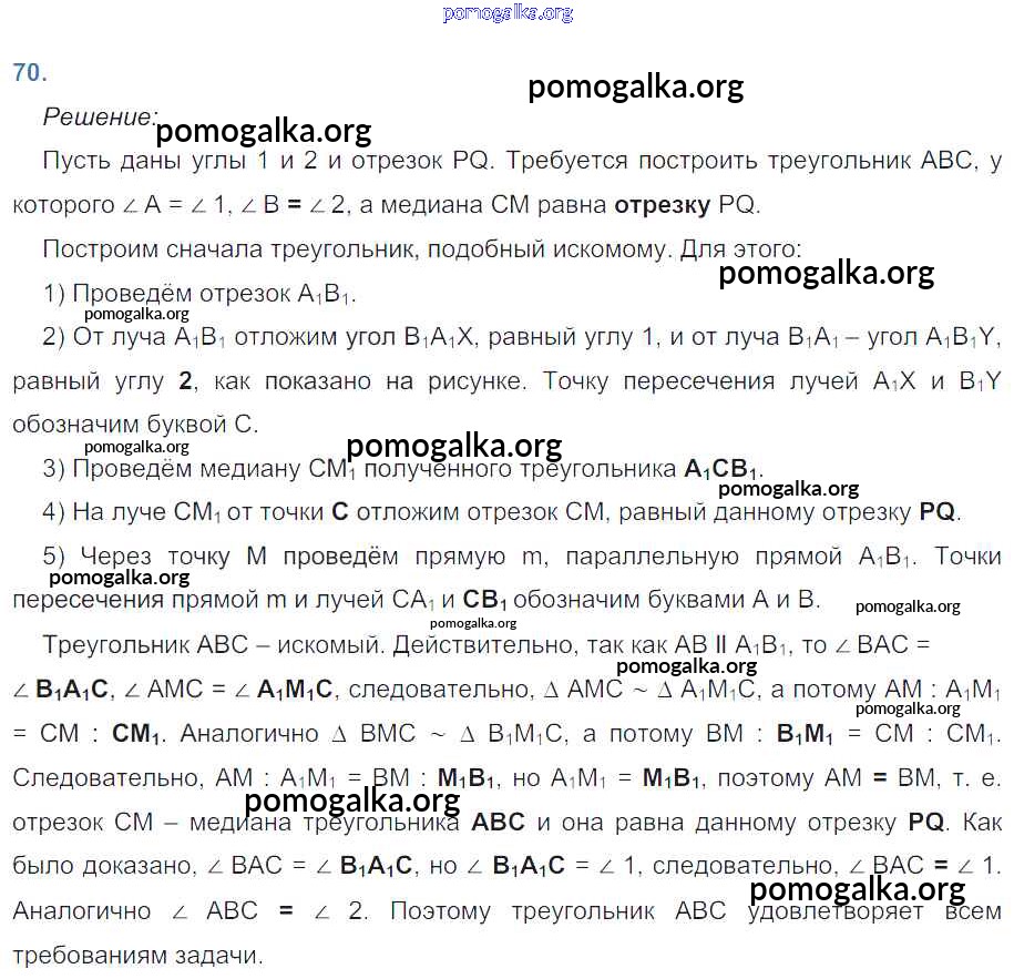 Готовые ответы - Геометрия 8 класс рабочая тетрадь Атанасян Л.С. - задача 70