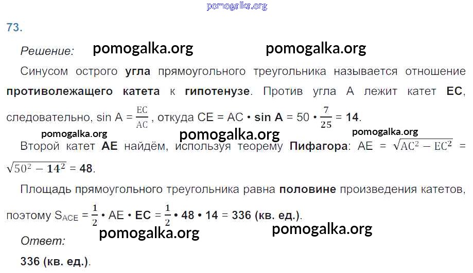 Готовые ответы - Геометрия 8 класс рабочая тетрадь Атанасян Л.С. - задача 73