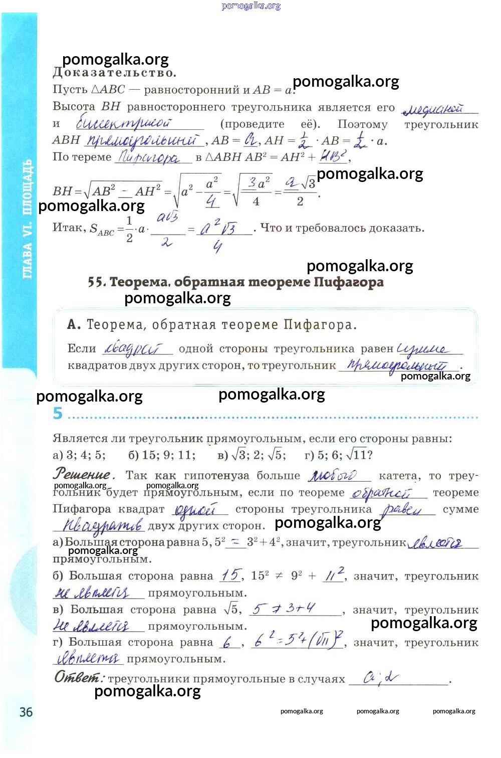 Готовые ответы - Геометрия 8 класс рабочая тетрадь Глазков Ю.А. (к уч. Атанасяна) - глава VI 36