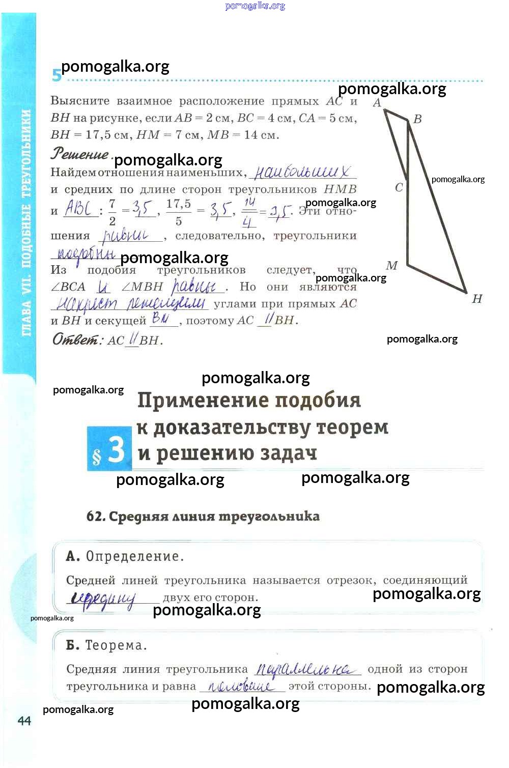 Глава VII. Подобные треугольники. Страницы 38-56