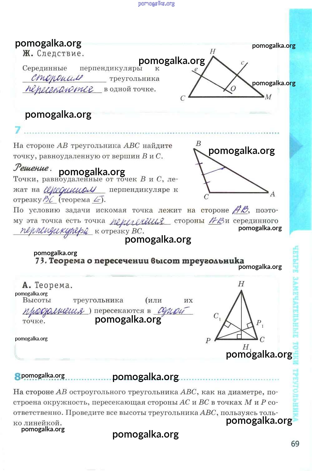 Готовые ответы - Геометрия 8 класс рабочая тетрадь Глазков Ю.А. (к уч. Атанасяна) - глава VIII 69