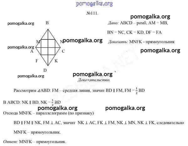 Готовые ответы - Геометрия 8 класс Казаков В.В. - задача 111