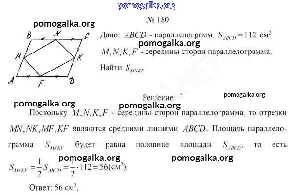 Готовые ответы - Геометрия 8 класс Казаков В.В. - задача 180