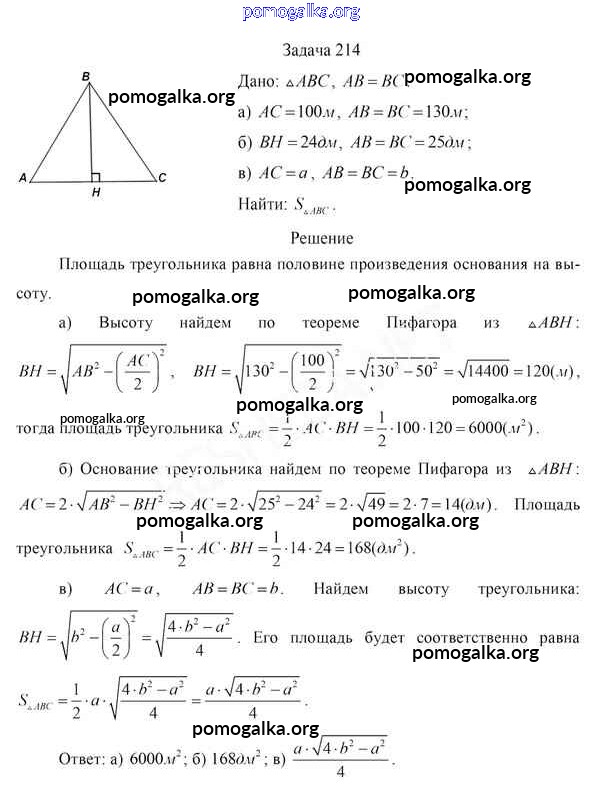 Готовые ответы - Геометрия 8 класс Казаков В.В. - задача 214
