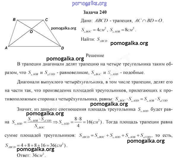Готовые ответы - Геометрия 8 класс Казаков В.В. - задача 240