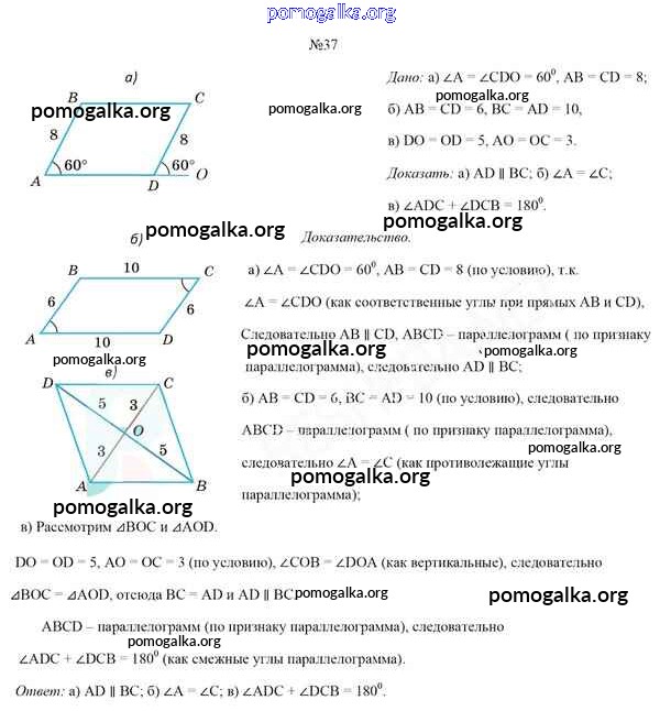 Готовые ответы - Геометрия 8 класс Казаков В.В. - задача 37