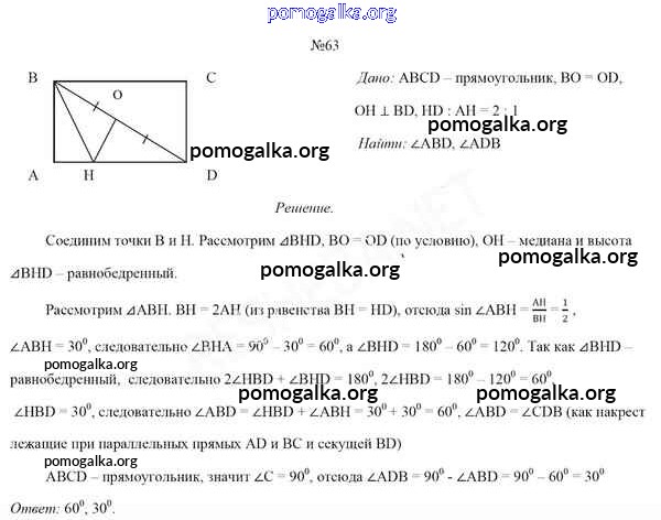 Готовые ответы - Геометрия 8 класс Казаков В.В. - задача 63