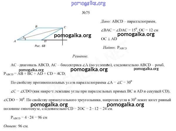 Готовые ответы - Геометрия 8 класс Казаков В.В. - задача 75