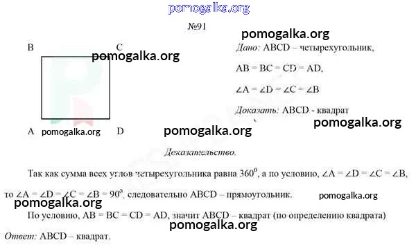 Готовые ответы - Геометрия 8 класс Казаков В.В. - задача 91