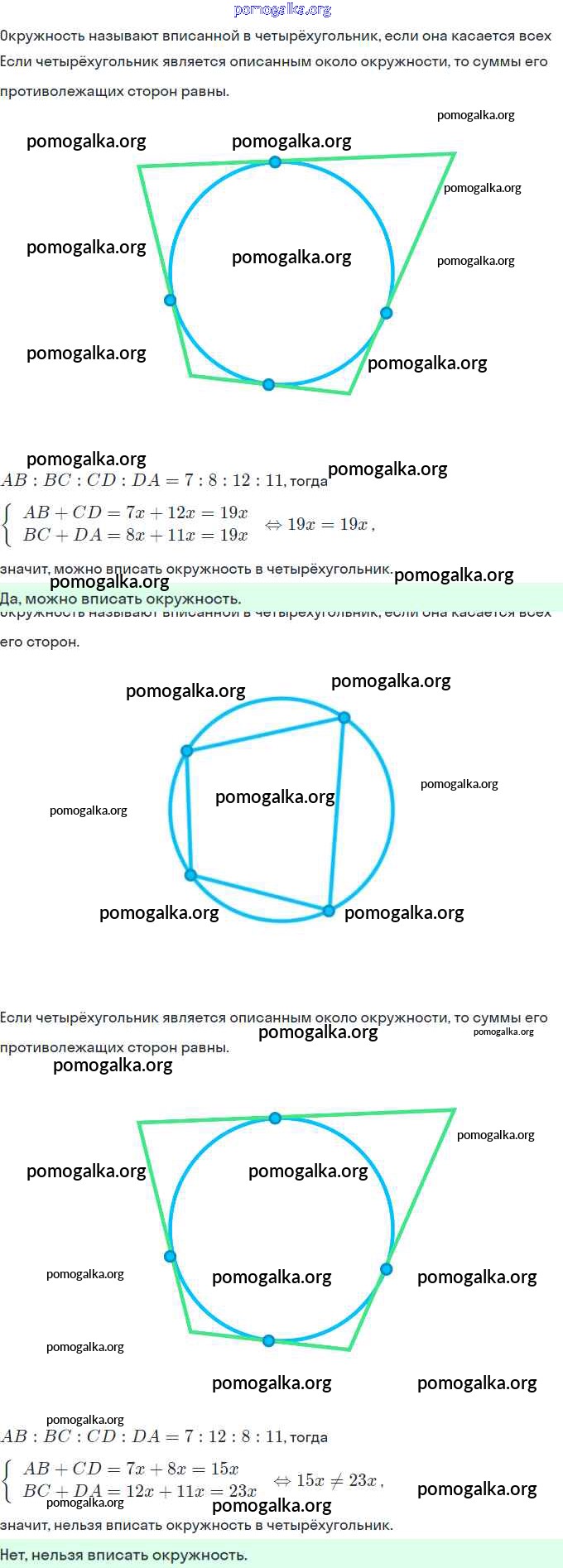 § 10. Описанная и вписанная окружности четырехугольника. №326-367