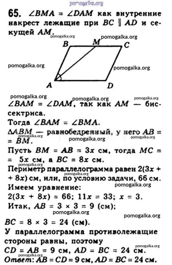Готовые ответы - Геометрия 8 класс Мерзляк А.Г. - § 2 глава 1 65