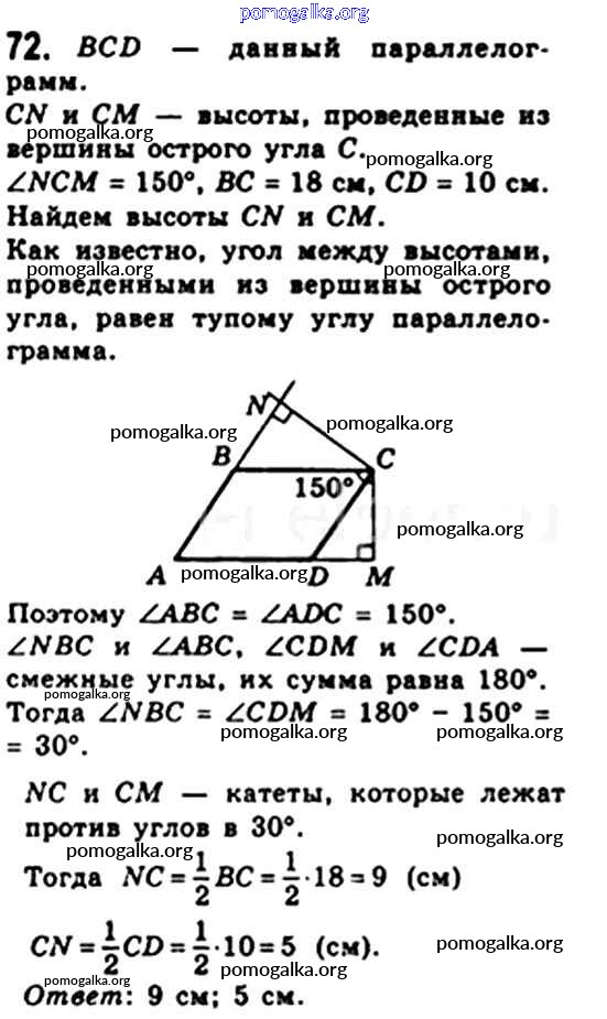 Готовые ответы - Геометрия 8 класс Мерзляк А.Г. - § 2 глава 1 72