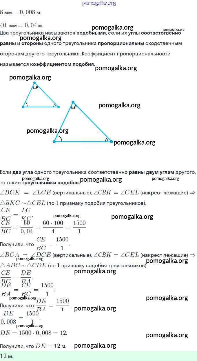 § 12. Подобные треугольники. Лемма о подобных треугольниках. №423-448