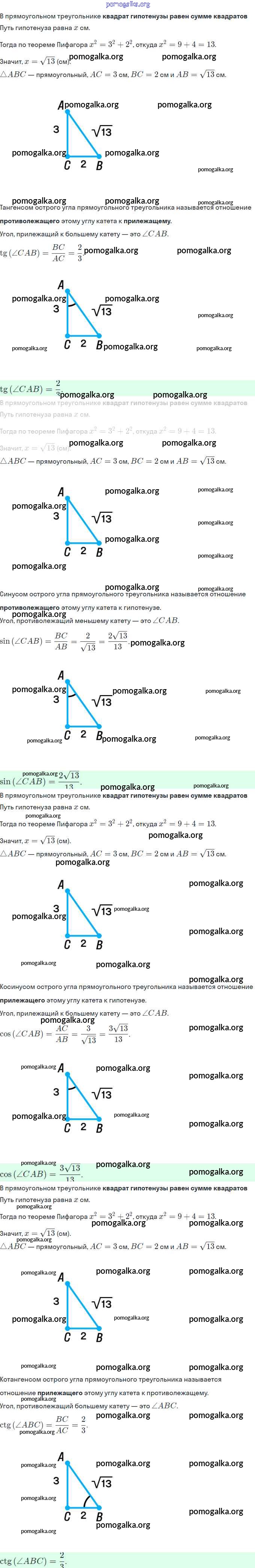 § 17. Тригонометрические функции острого угла прямоугольного треугольника. №579-606