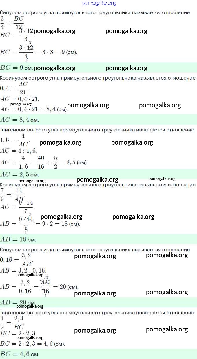 § 17. Тригонометрические функции острого угла прямоугольного треугольника. №579-606