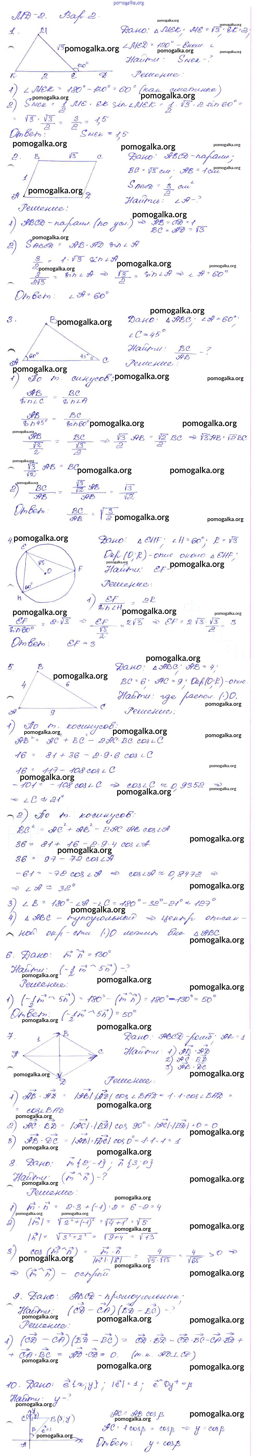 Готовые ответы - Геометрия 9 класс Дидактические материалы Зив Б.Г. - мд-2. вариант математические диктанты 2
