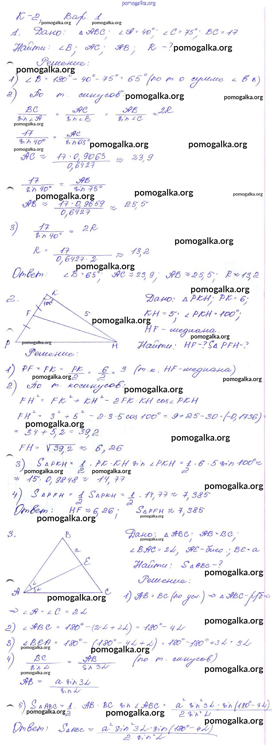 Готовые ответы - Геометрия 9 класс Дидактические материалы Зив Б.Г. - кр-2. вариант контрольные работы 1