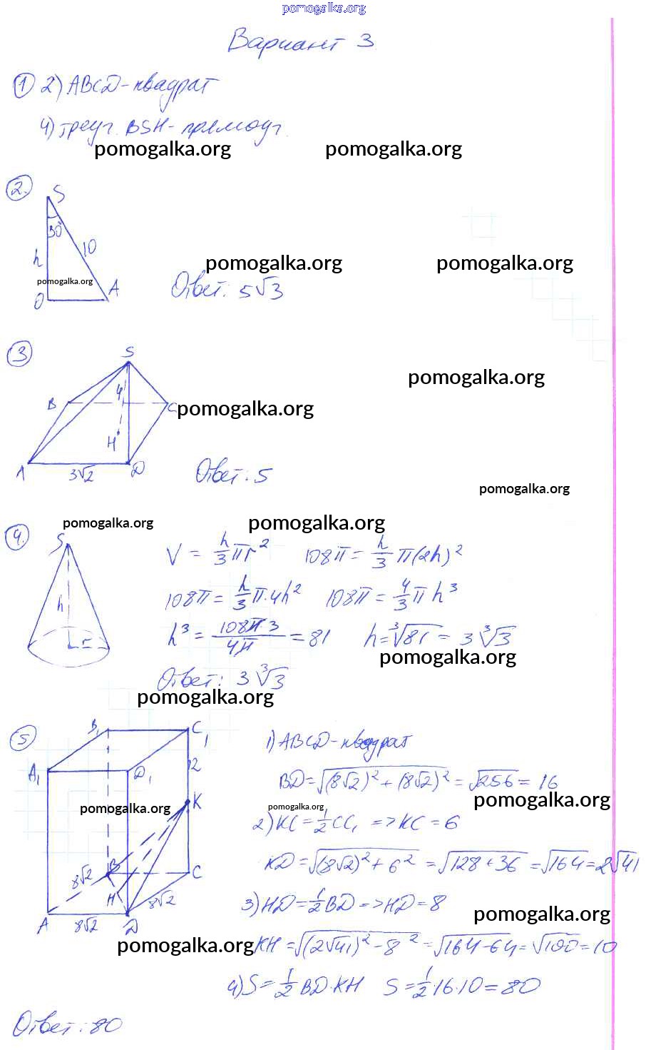 Готовые ответы - Геометрия 9 класс контрольные работы Мельникова Н.Б. (к уч. Атанасяна Л.С.) - кр-5. вариант 4