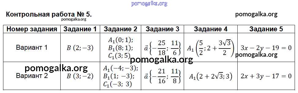 Готовые ответы - Геометрия 9 класс КИМ Рурукин А.Н. - контрольная работа 5
