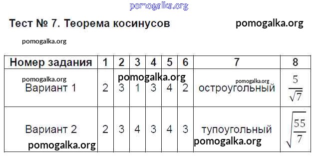 Готовые ответы - Геометрия 9 класс КИМ Рязановский А.Р. - тест 7
