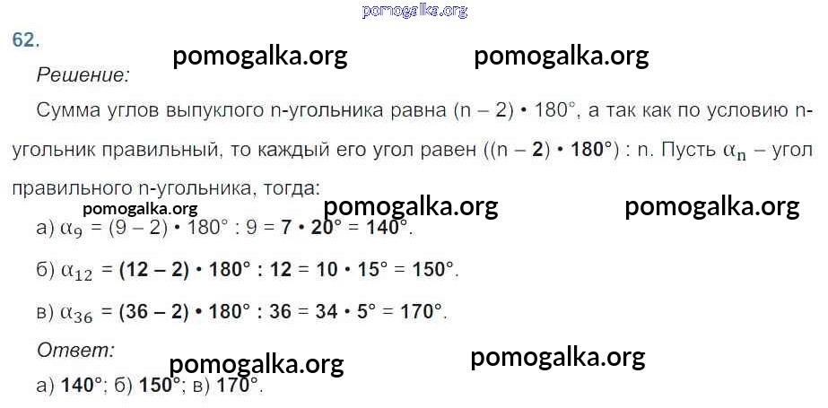 Готовые ответы - Геометрия 9 класс рабочая тетрадь Атанасян Л.С. - задача 62