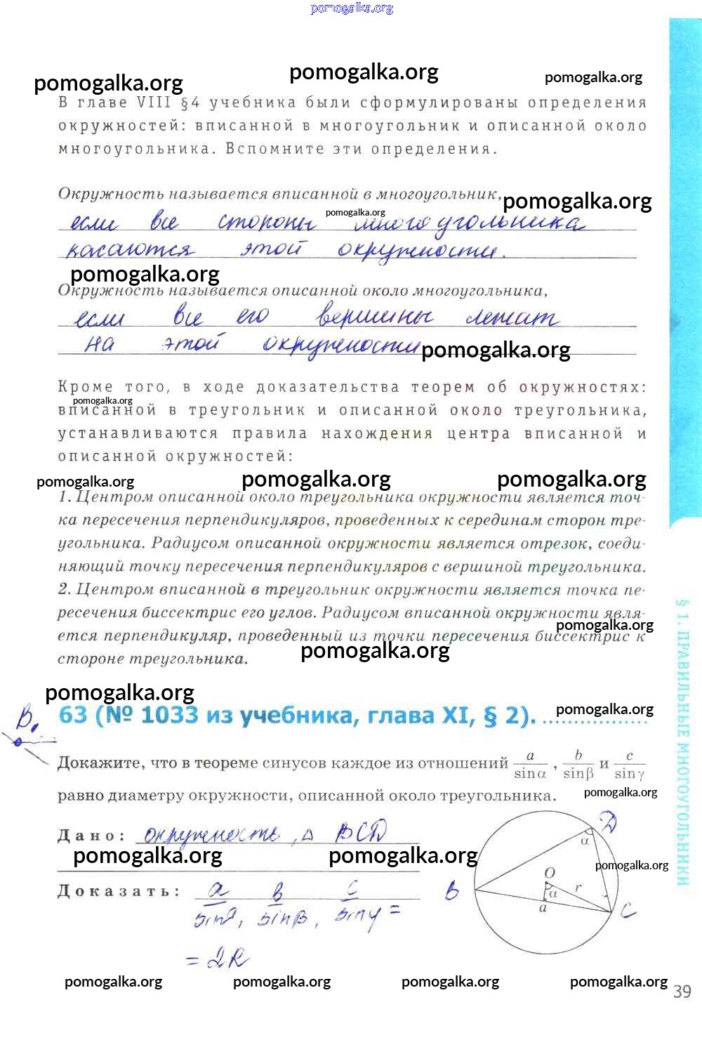 Готовые ответы - Геометрия 9 класс рабочая тетрадь Мищенко Т.М. (к уч. Атанасян Л.С.) - страница 39