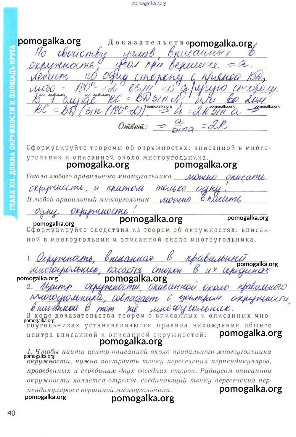 Готовые ответы - Геометрия 9 класс рабочая тетрадь Мищенко Т.М. (к уч. Атанасян Л.С.) - страница 40