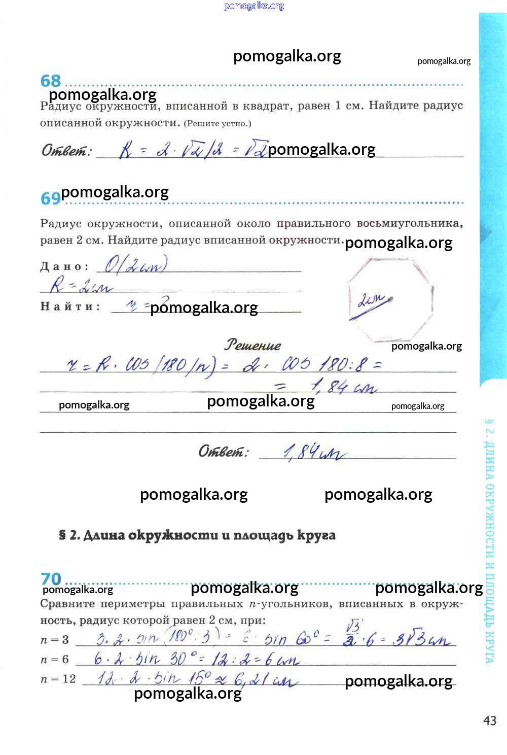 Готовые ответы - Геометрия 9 класс рабочая тетрадь Мищенко Т.М. (к уч. Атанасян Л.С.) - страница 43