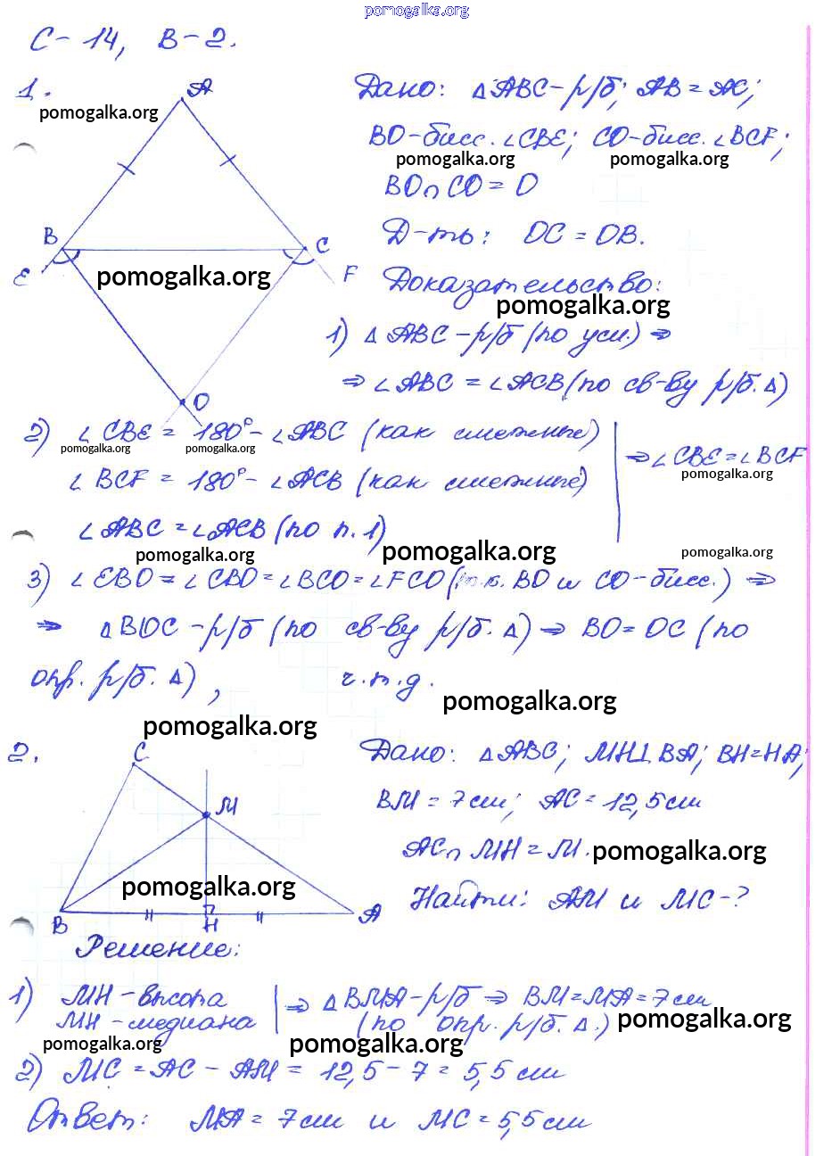 Готовые ответы - Геометрия 7-9 классы самостоятельные и контрольные работы Иченская М.А. - ср-14. вариант самостоятельные работы 2
