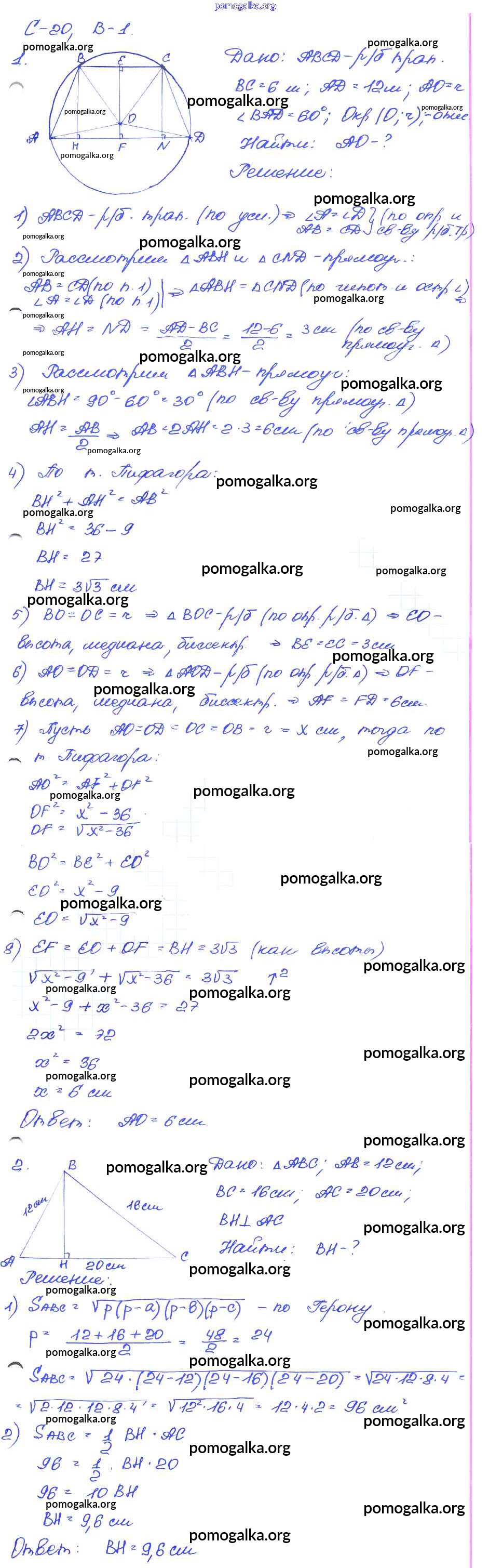 Готовые ответы - Геометрия 7-9 классы самостоятельные и контрольные работы Иченская М.А. - ср-20. вариант самостоятельные работы 1