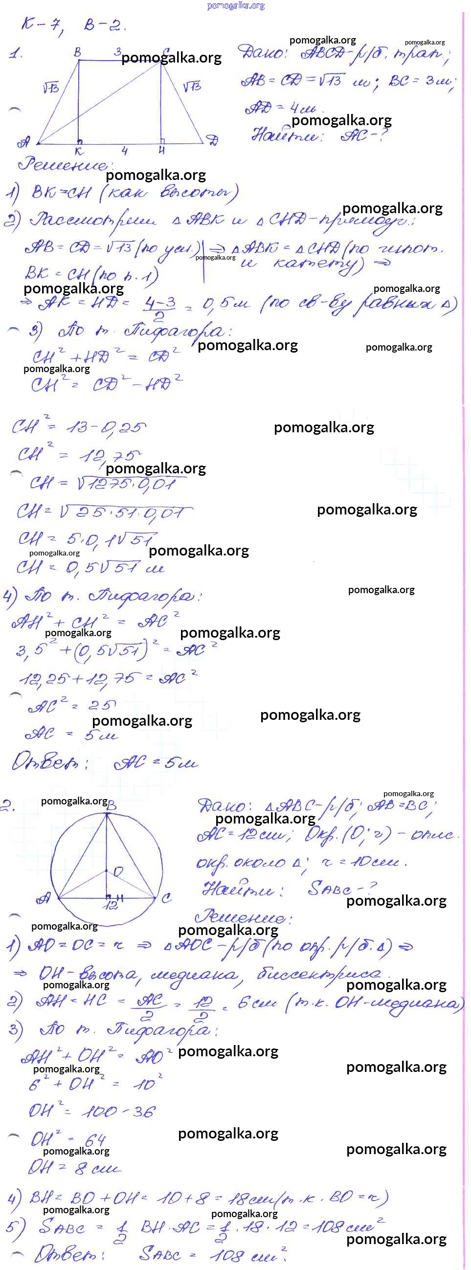 Готовые ответы - Геометрия 7-9 классы самостоятельные и контрольные работы Иченская М.А. - кр-7. вариант контрольные работы 2