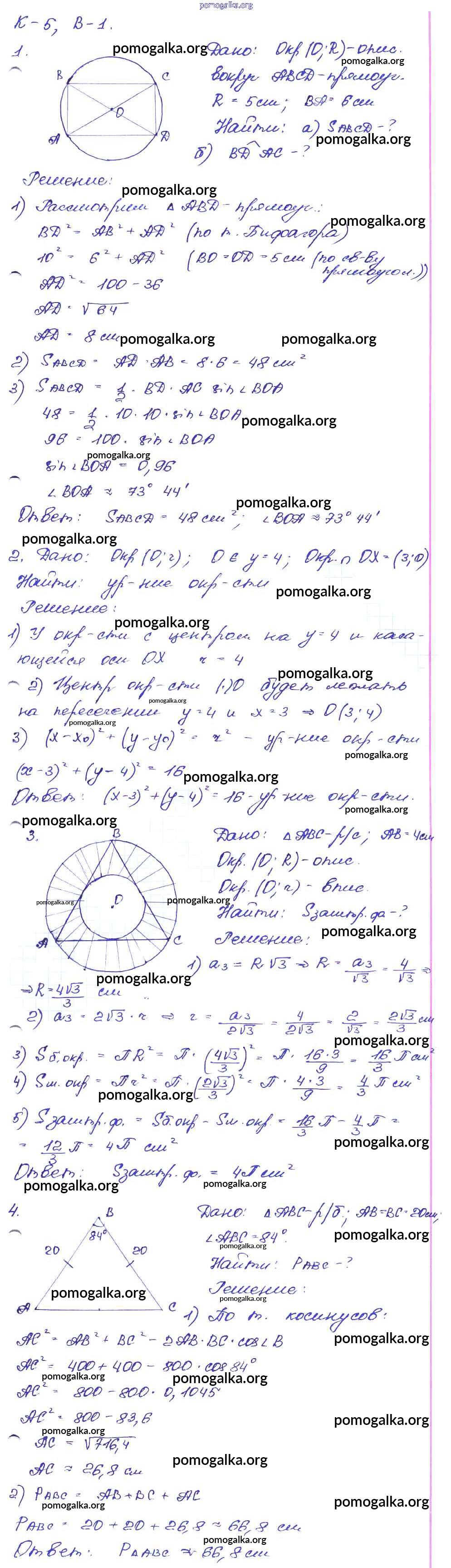 Готовые ответы - Геометрия 7-9 классы самостоятельные и контрольные работы Иченская М.А. - кр-5. вариант контрольные работы 1