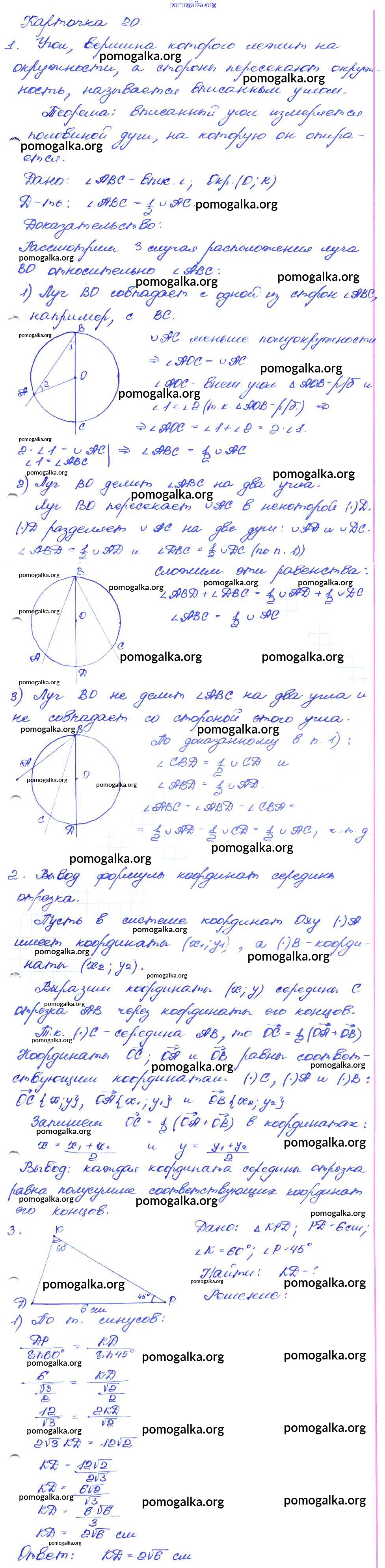 Готовые ответы - Геометрия 7-9 классы самостоятельные и контрольные работы Иченская М.А. - итоговый зачёт 9 класс 19