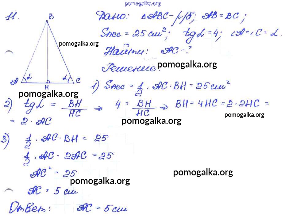 Готовые ответы - Геометрия 7-9 классы самостоятельные и контрольные работы Иченская М.А. - дополнительная задача 11